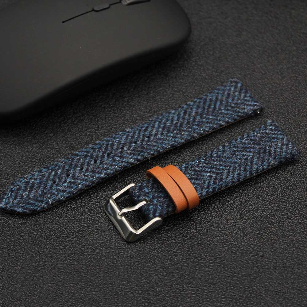 Hybrid Canvas & Top Grain Leather Watch Strap – Herringbone Tweed, Quick Release